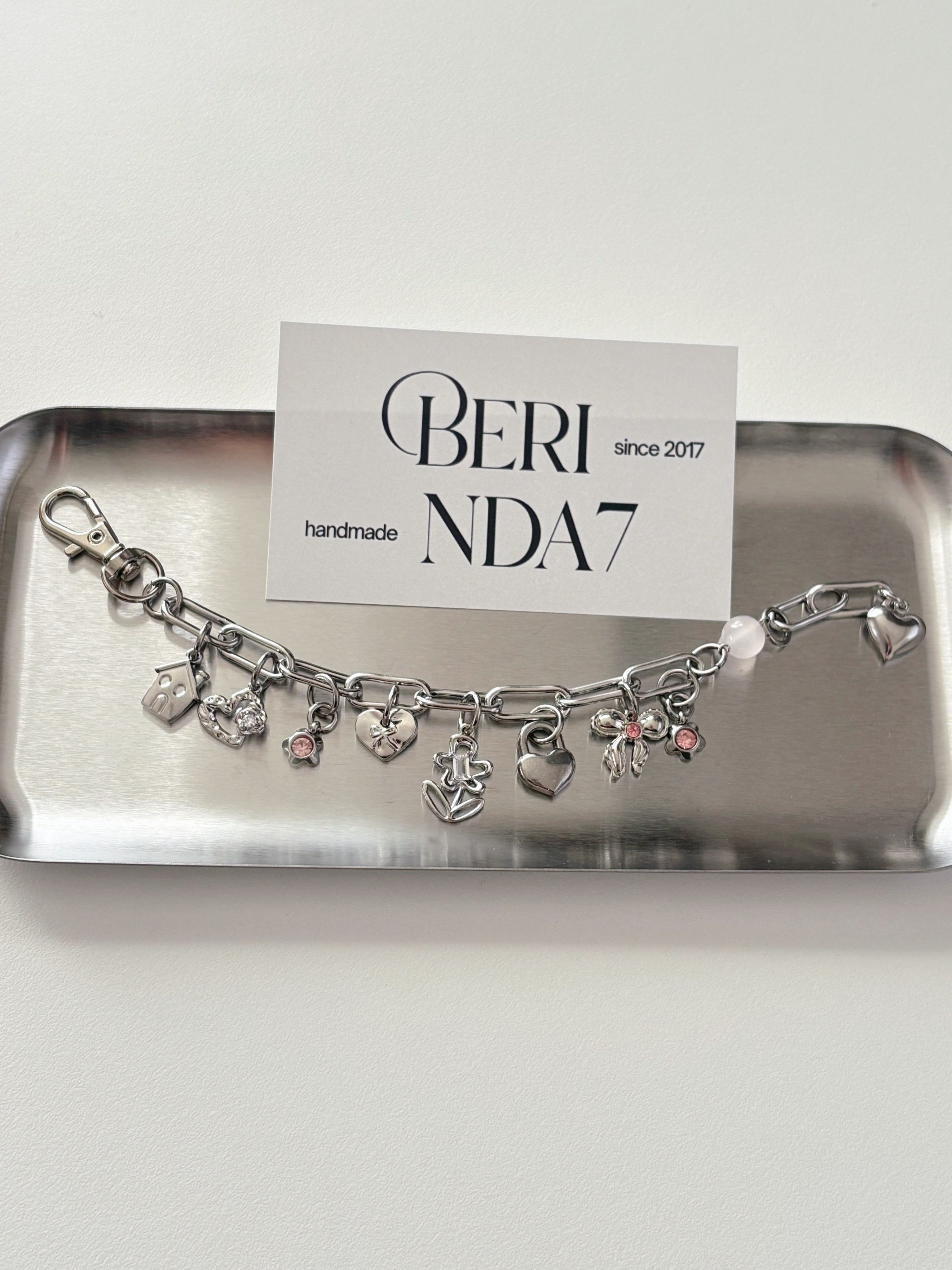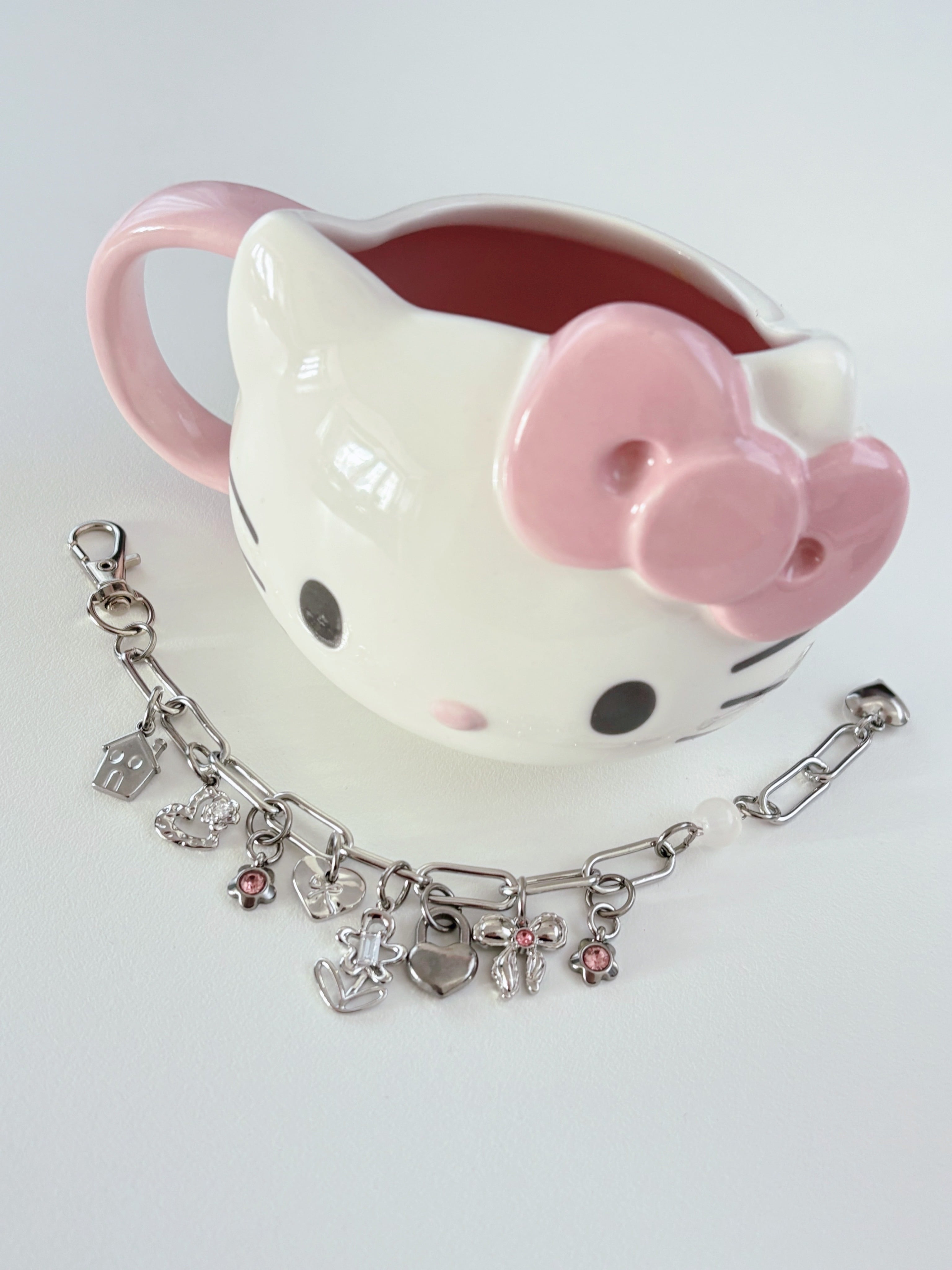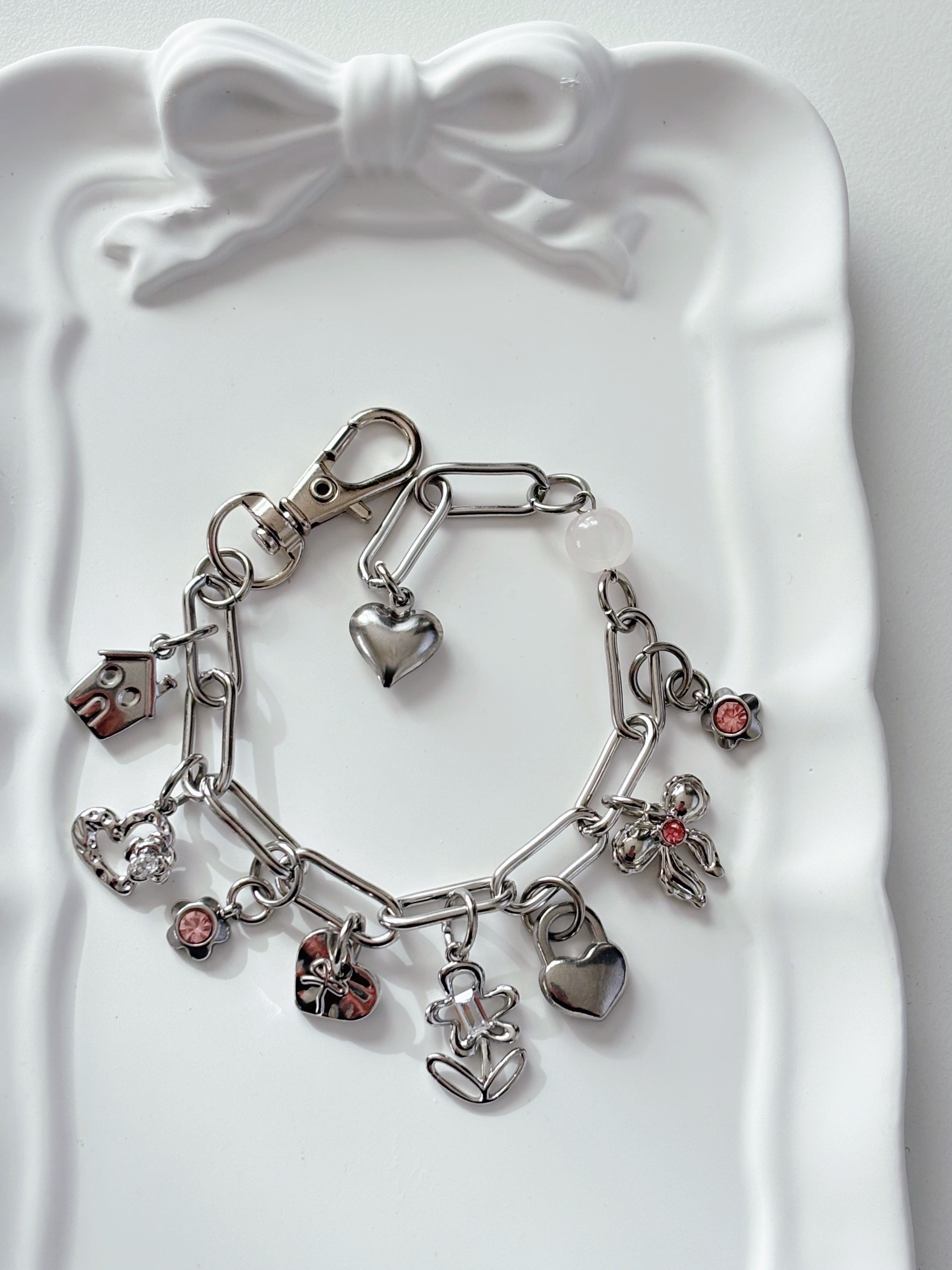 glass pink heart bracelet