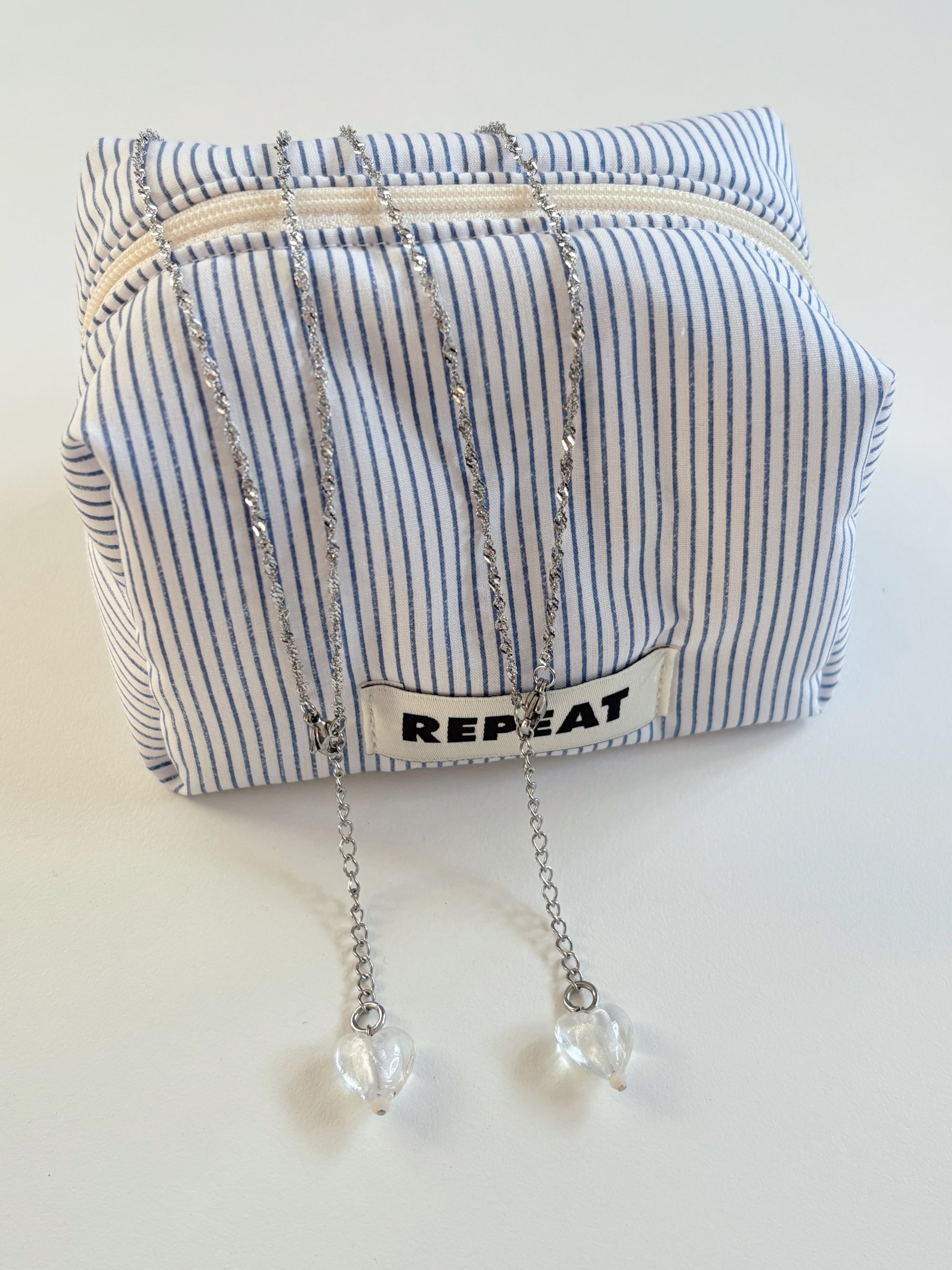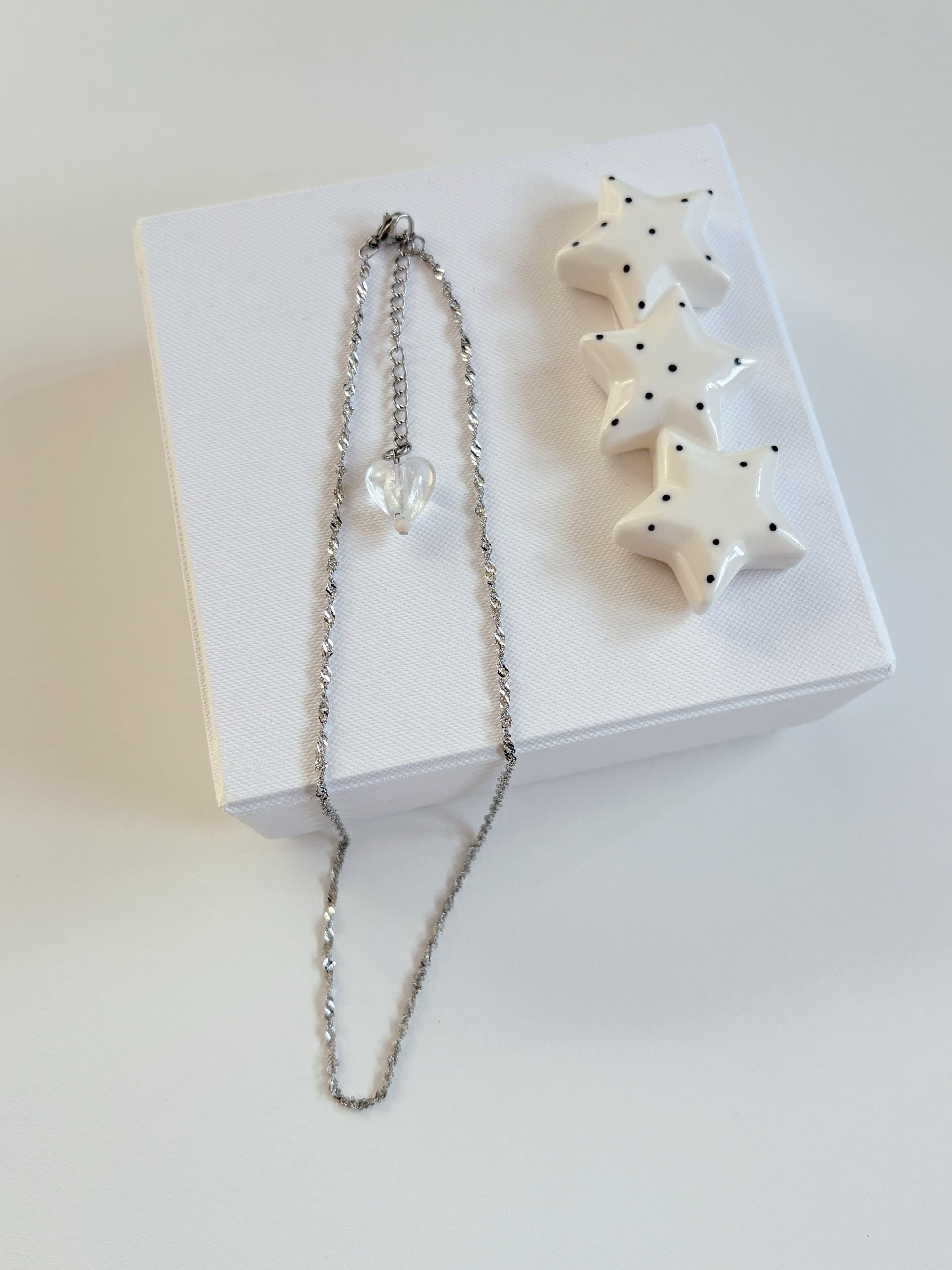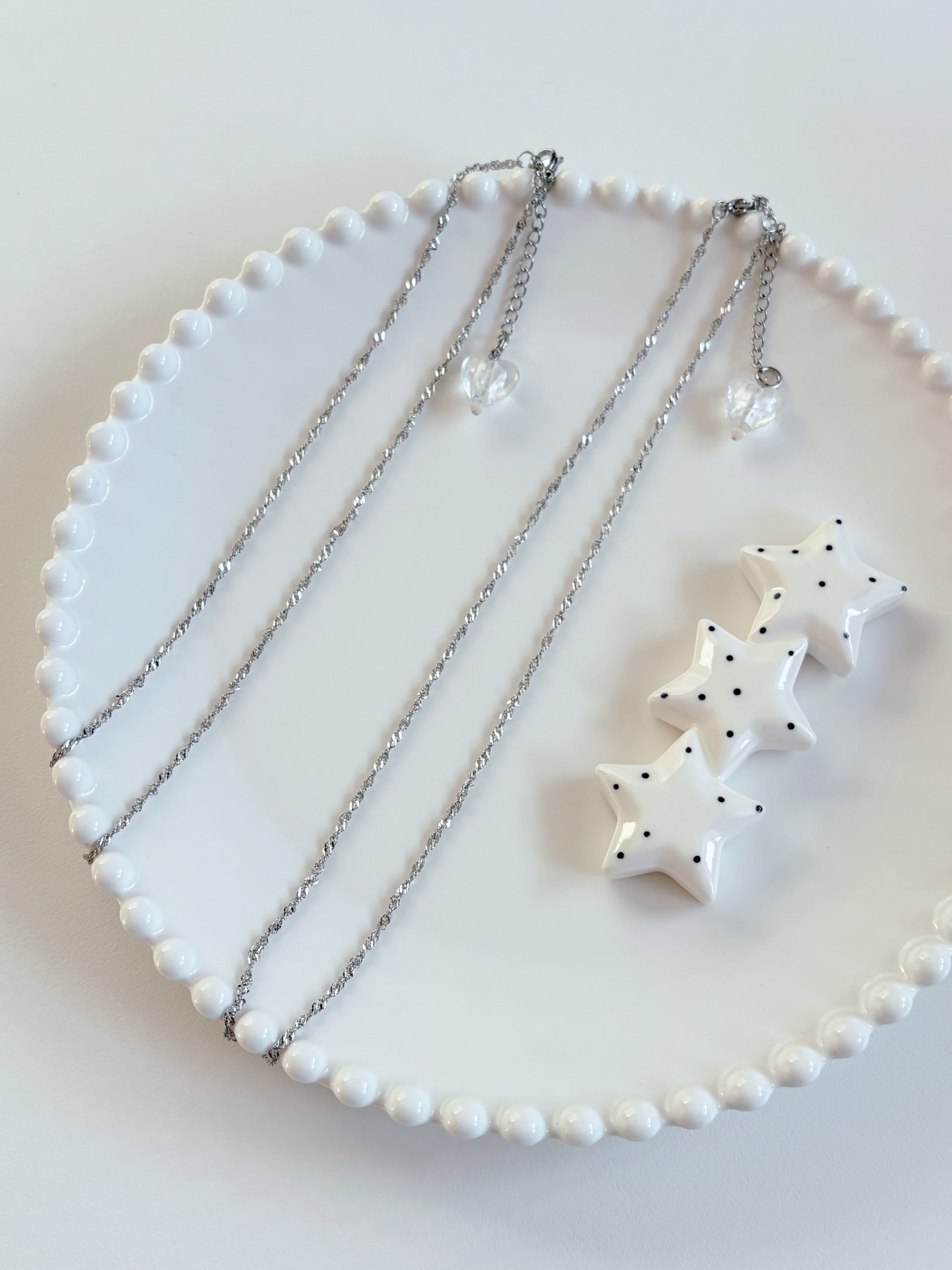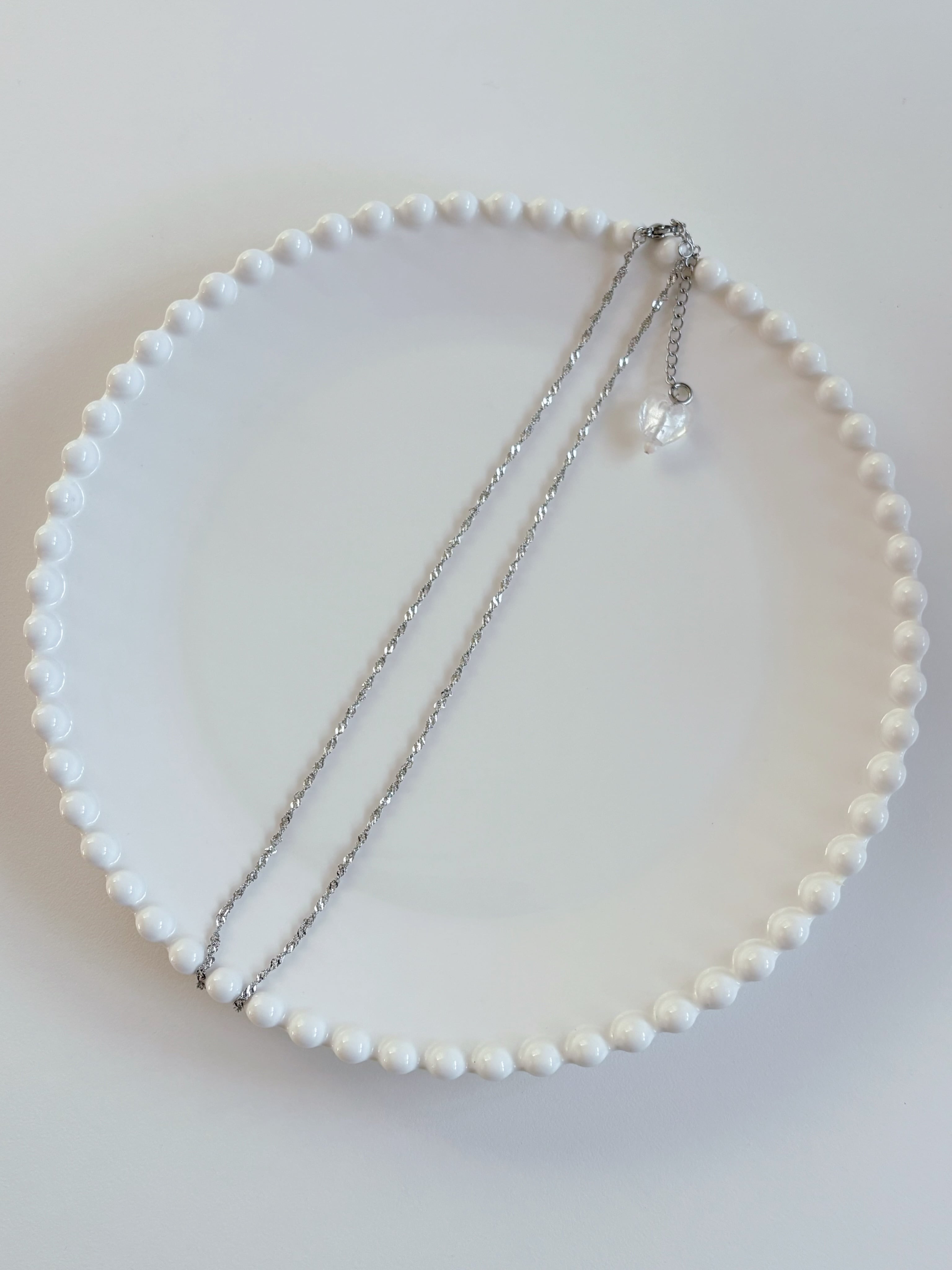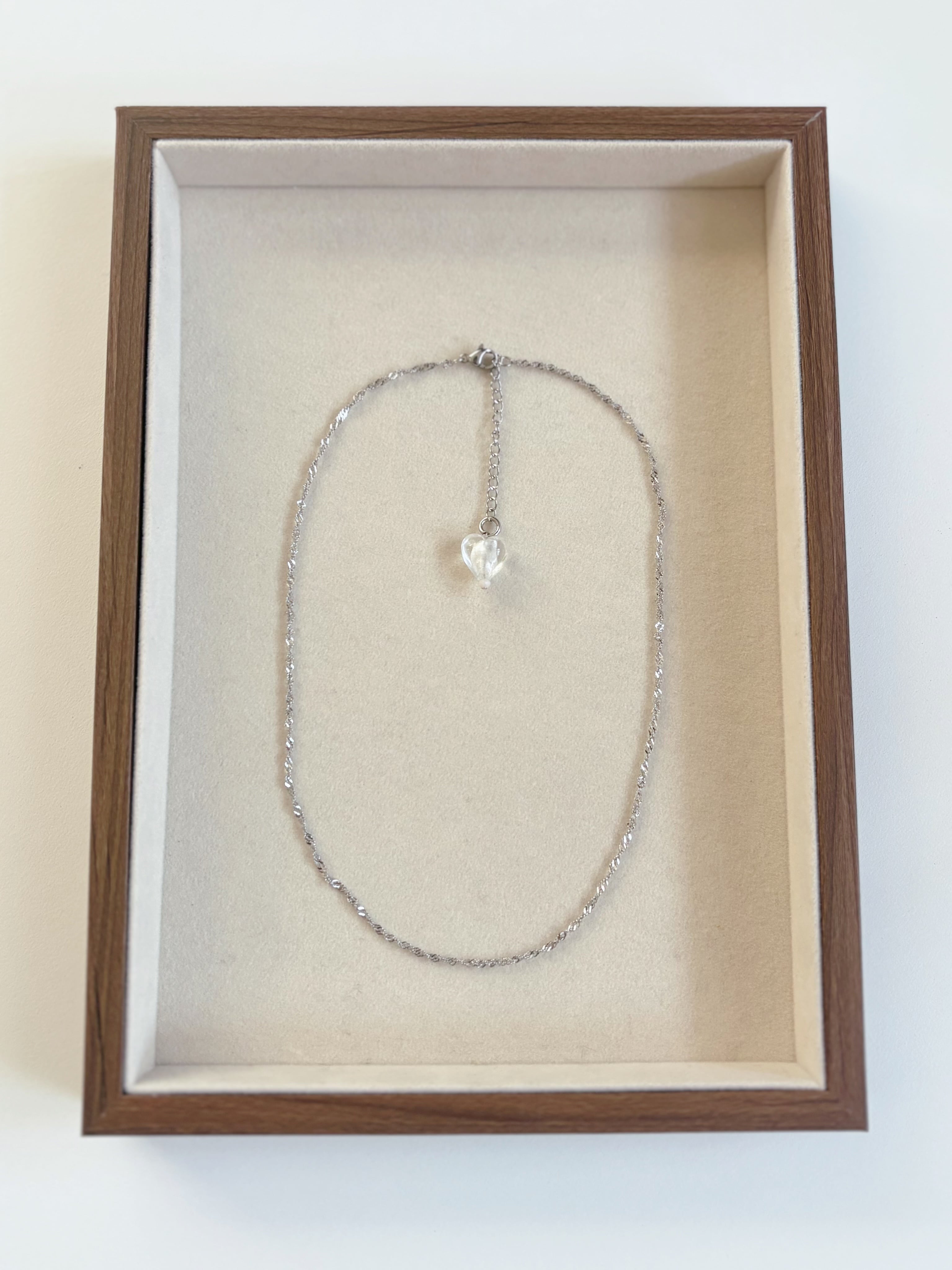 ステンレスのチェーンにガラスハート