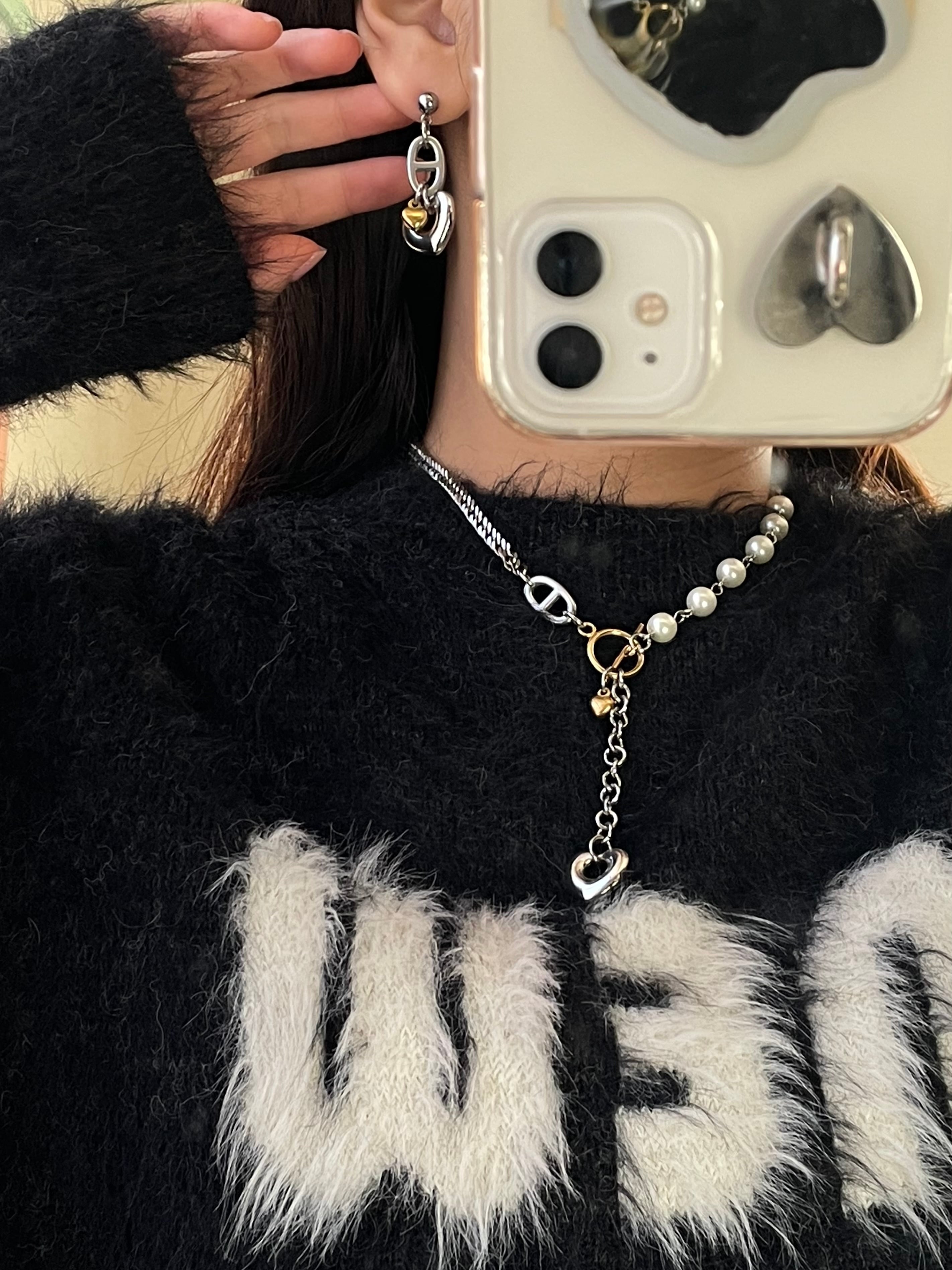silver × gold heart pierce